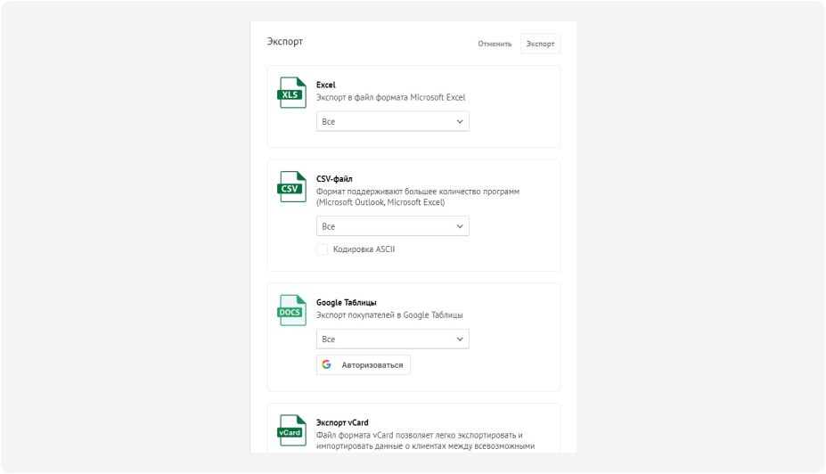 С другой стороны, вы можете выгрузить данные из CRM — для анализа в других программах или для создания отчетов. Это позволит получить более глубокое понимание вашей работы, принять более эффективные решения.